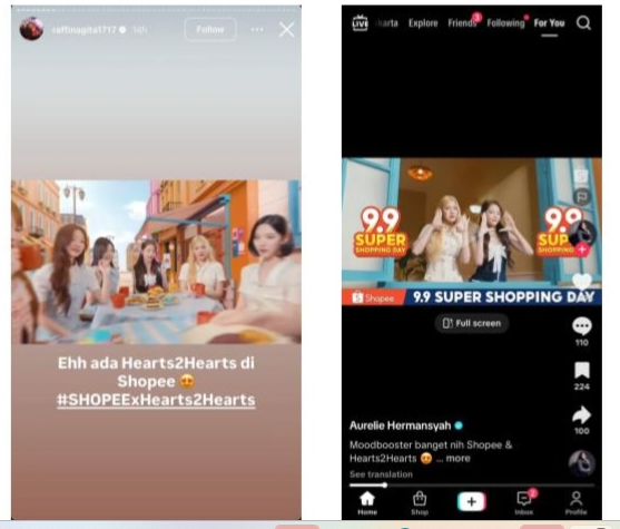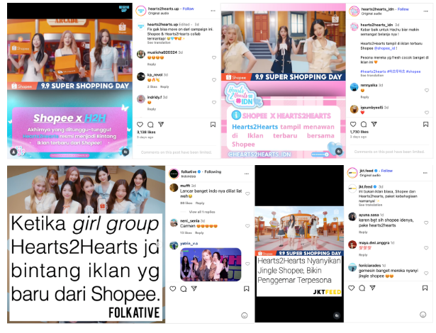 uforia semakin meluas ketika akun-akun fans Hearts2Hearts seperti @Hearts2Hearts_idn dan @Hearts2Hearts.up, serta akun media digital seperti @folkative dan @jkt.feed, turut meramaikan dengan membagikan potongan video, memberikan komentar positif, hingga mengajak para pengikutnya untuk ikut menikmati keseruan kolaborasi ini. Arus dukungan ini membuktikan bahwa iklan tersebut bukan hanya mendapat perhatian dari fans K-Pop, melainkan juga dari komunitas digital yang lebih luas di Indonesia.